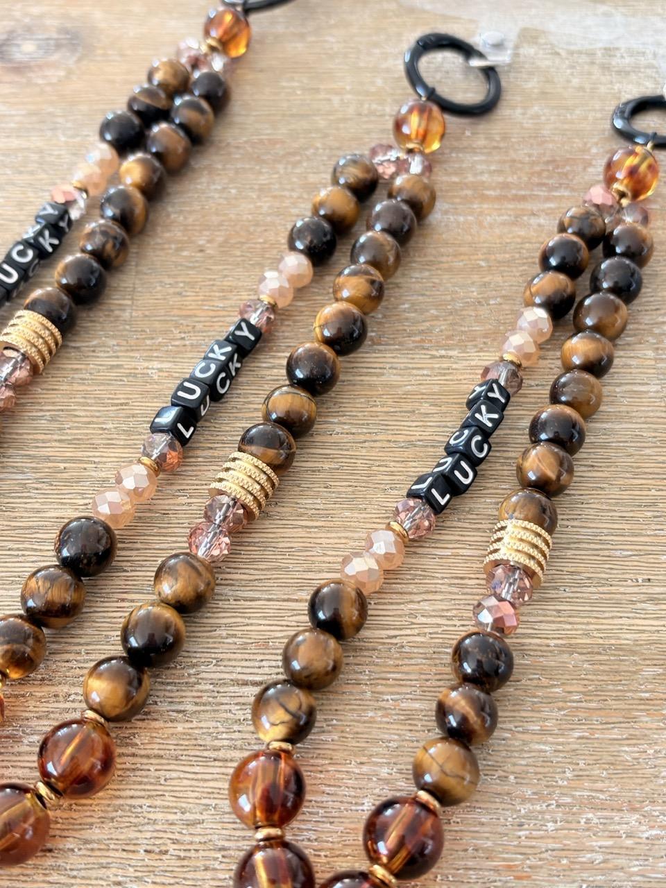 Détails « Lucky » : Un message positif pour attirer la chance, accompagné de breloques délicates en acier inoxydable.