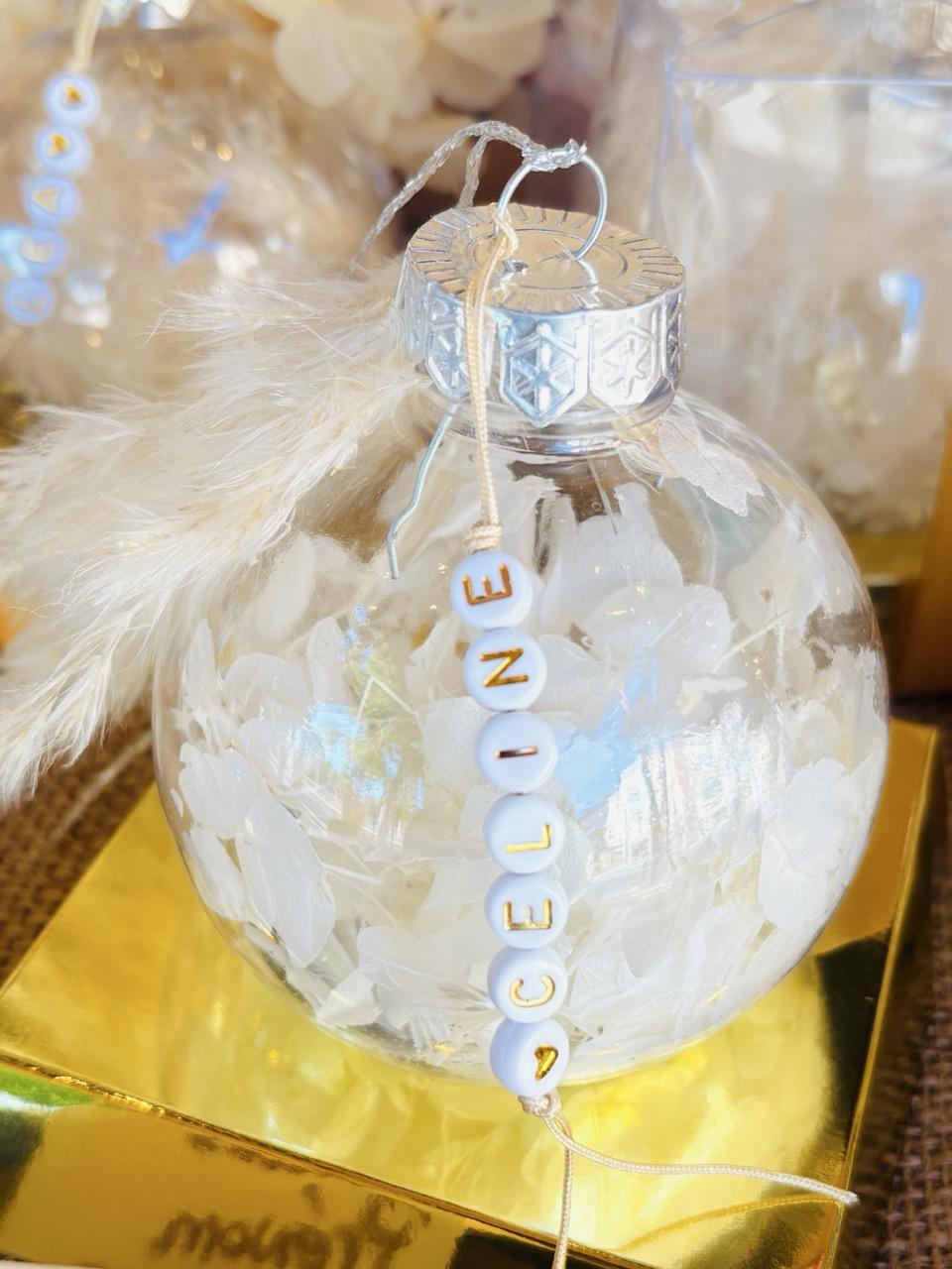 Boules de Noël Fleurs séchées avec message personnalisé