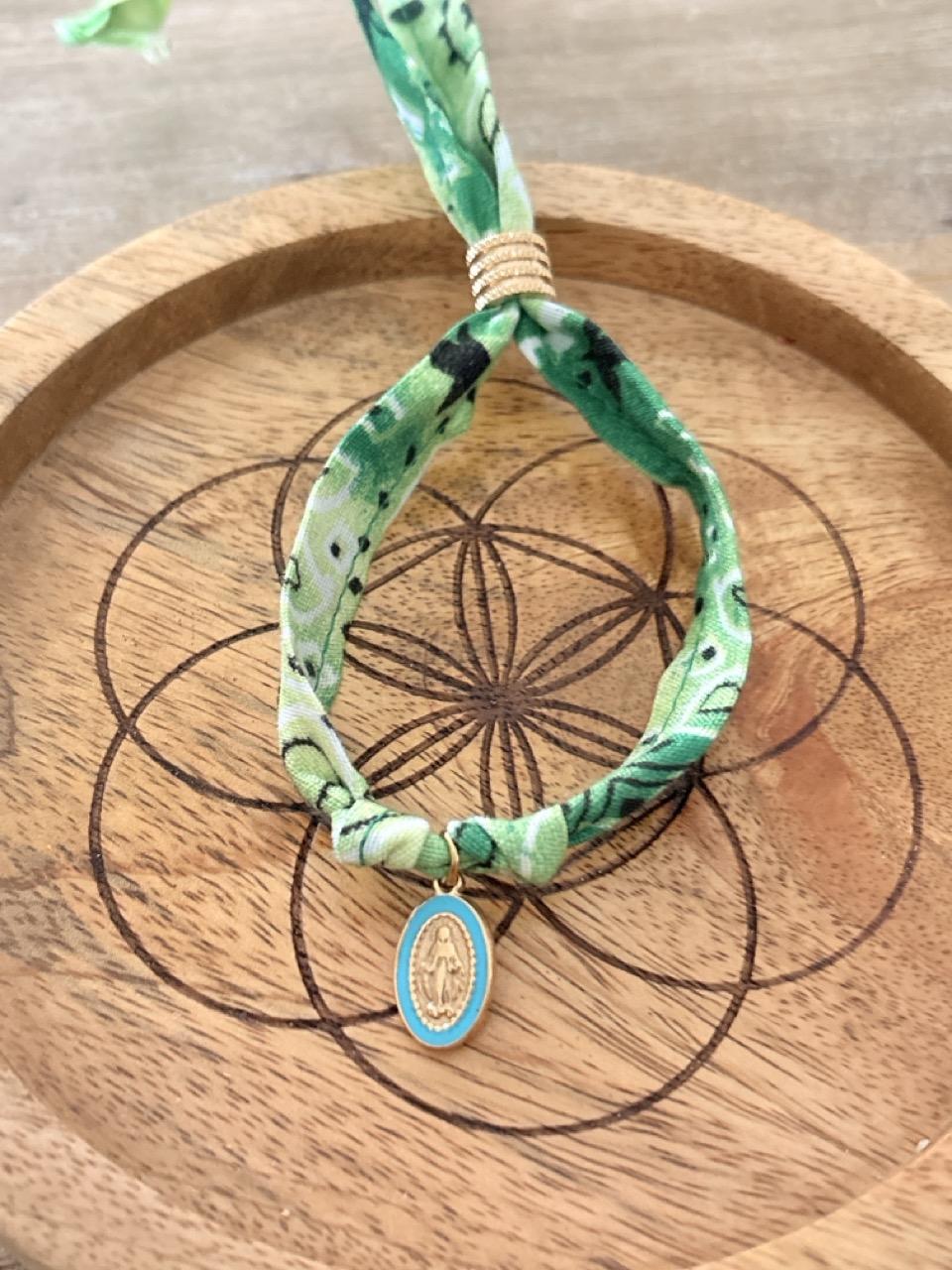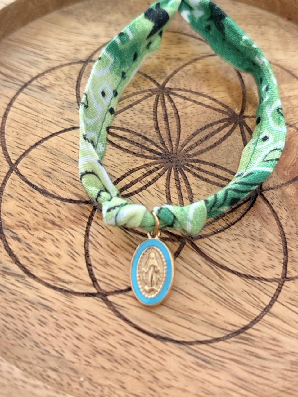 Bracelet Bandana Vert & Breloque Vierge