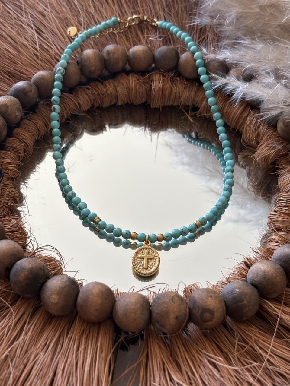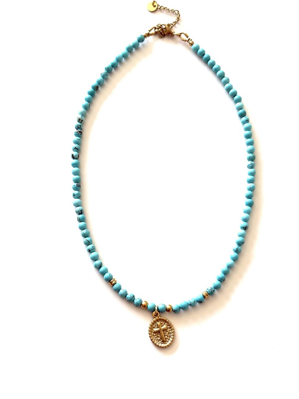 Collier fait-main en pierres naturelles Turquoise 4mm
