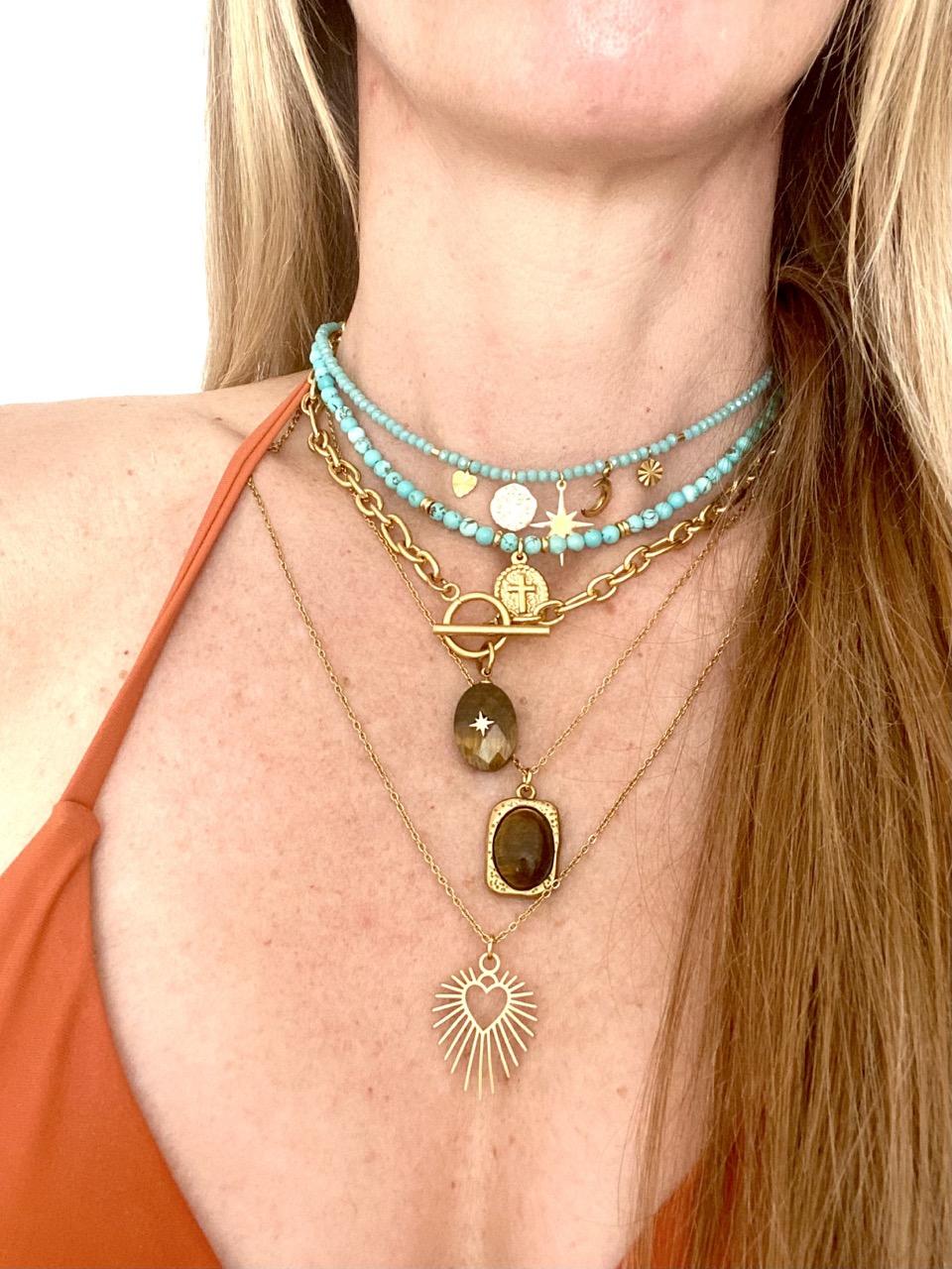 Collier ras de cou au style Bohème fait-main, en pierres naturelles Turquoise 4mm.