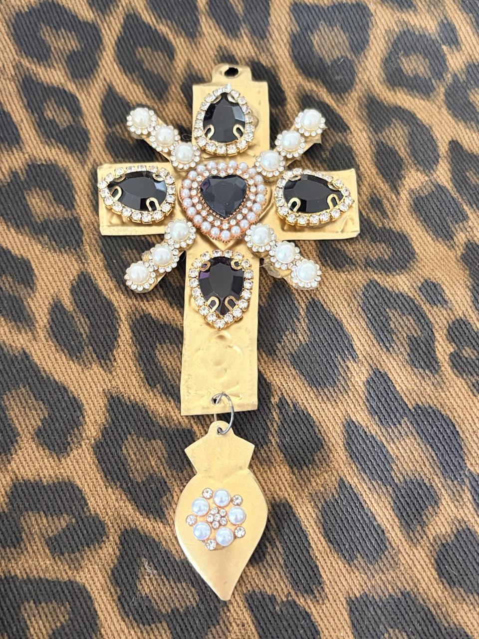 Ex-Votos Strass – Croix Faits Main – Noir